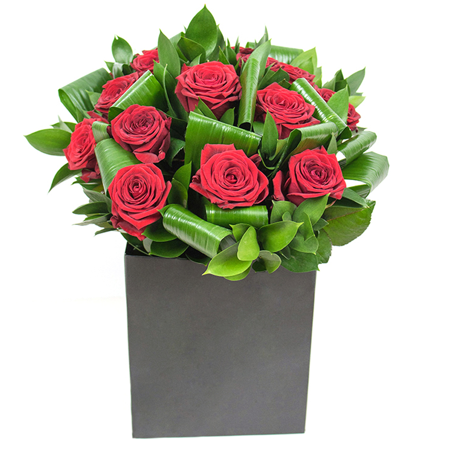 Elevate any room with our tasteful bouquet featuring stunning red roses, fresh aspidistra leaves, and elegant ruscus. Each bloom is hand-selected to ensure premium freshness and beauty.